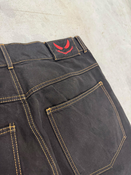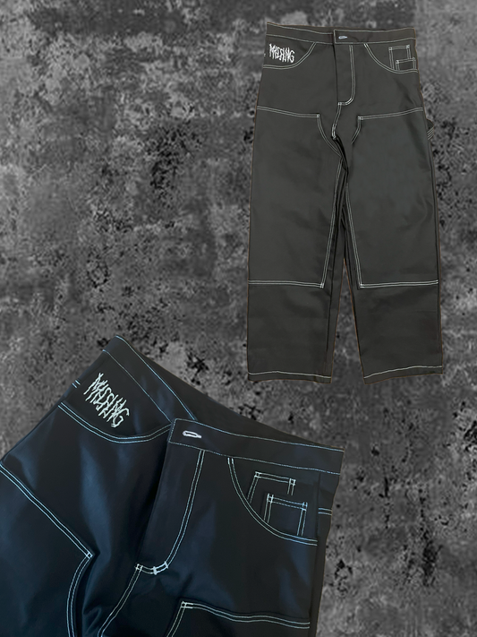 Black Cargo Denim Gold Stitching